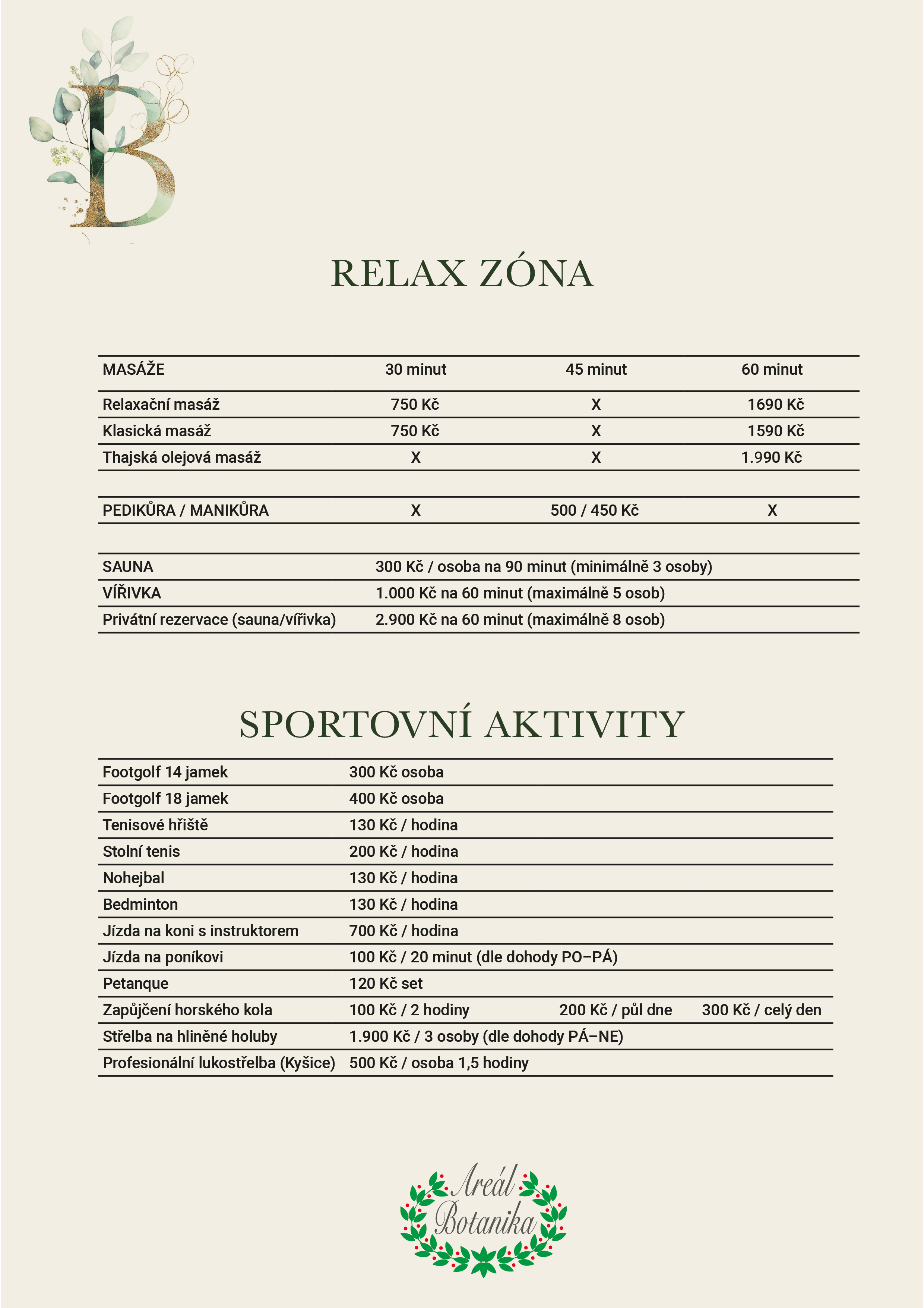 Tel: recepce: +420 604 938 525, restaurace Vila Botanika +420 770 179 832