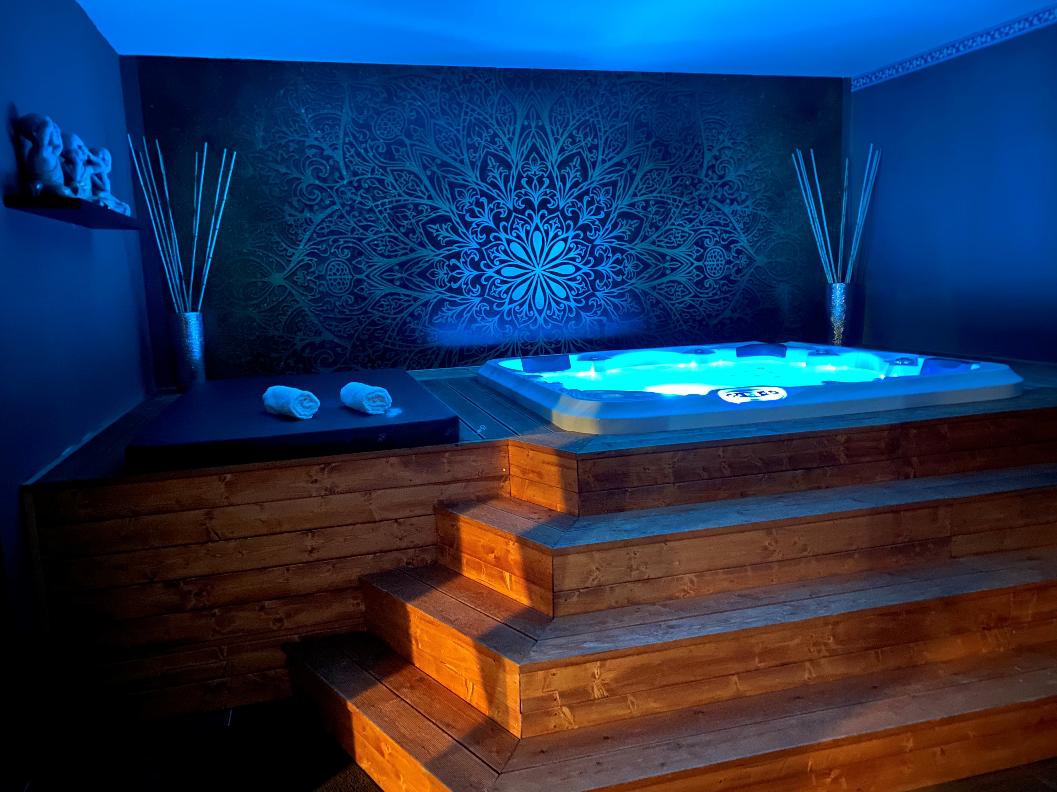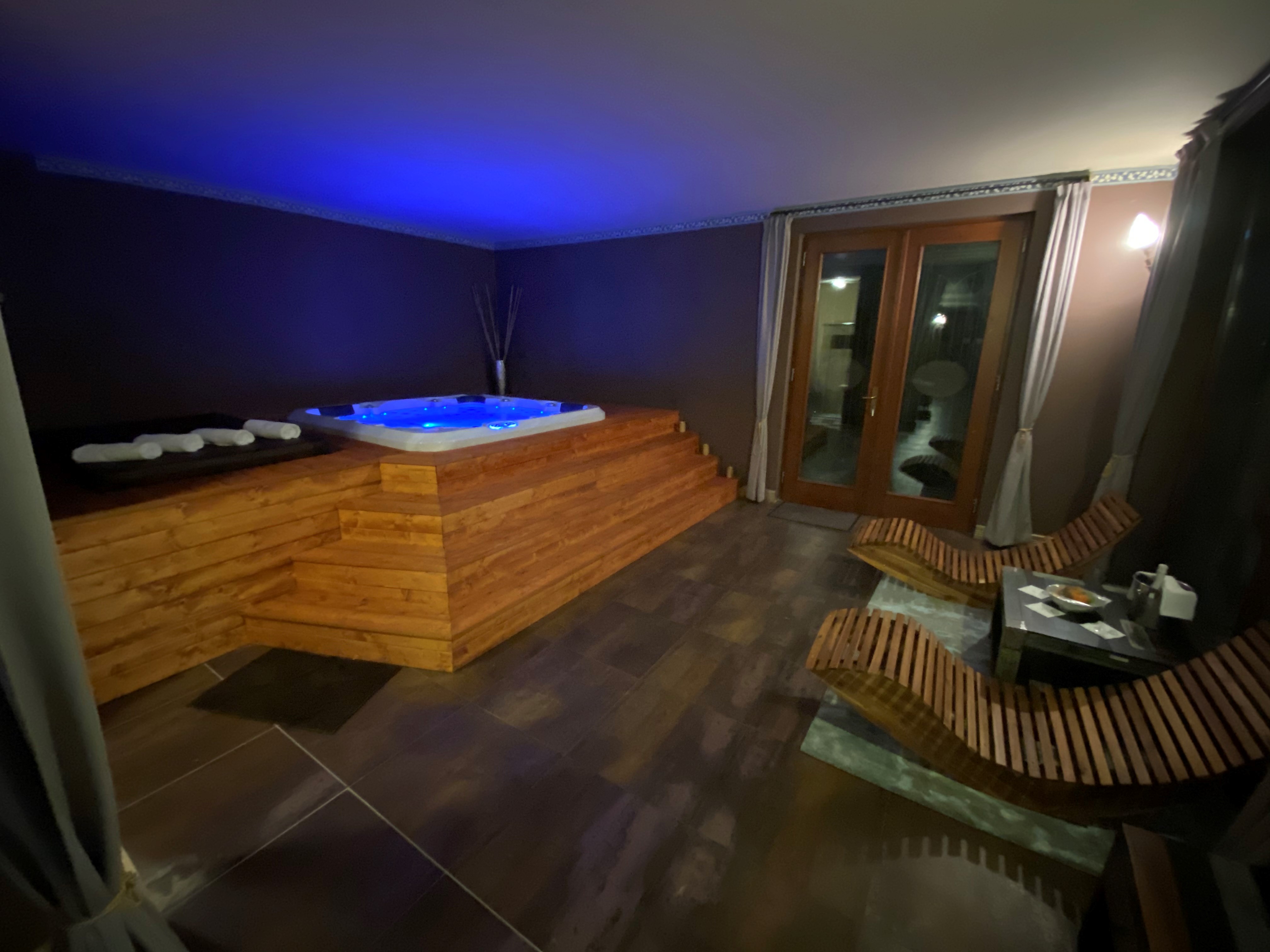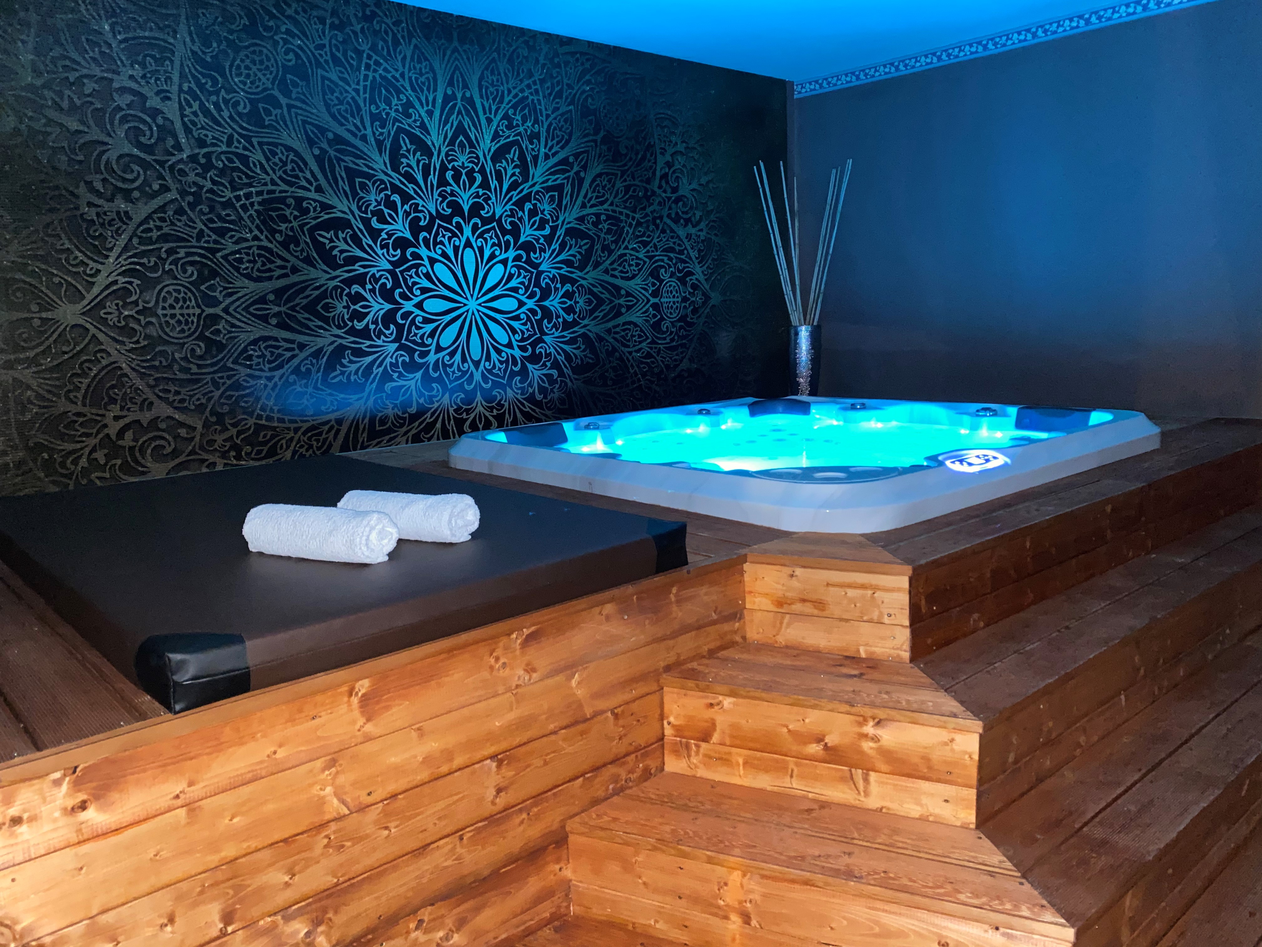 Součástí komplexu jsou také lázně, kde najdete venkovní bazén a saunu.